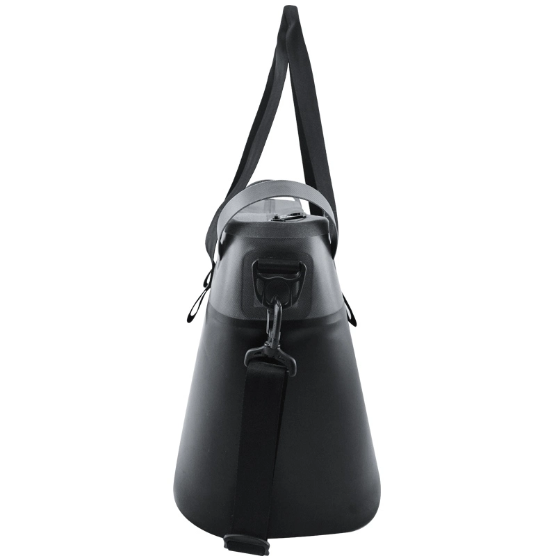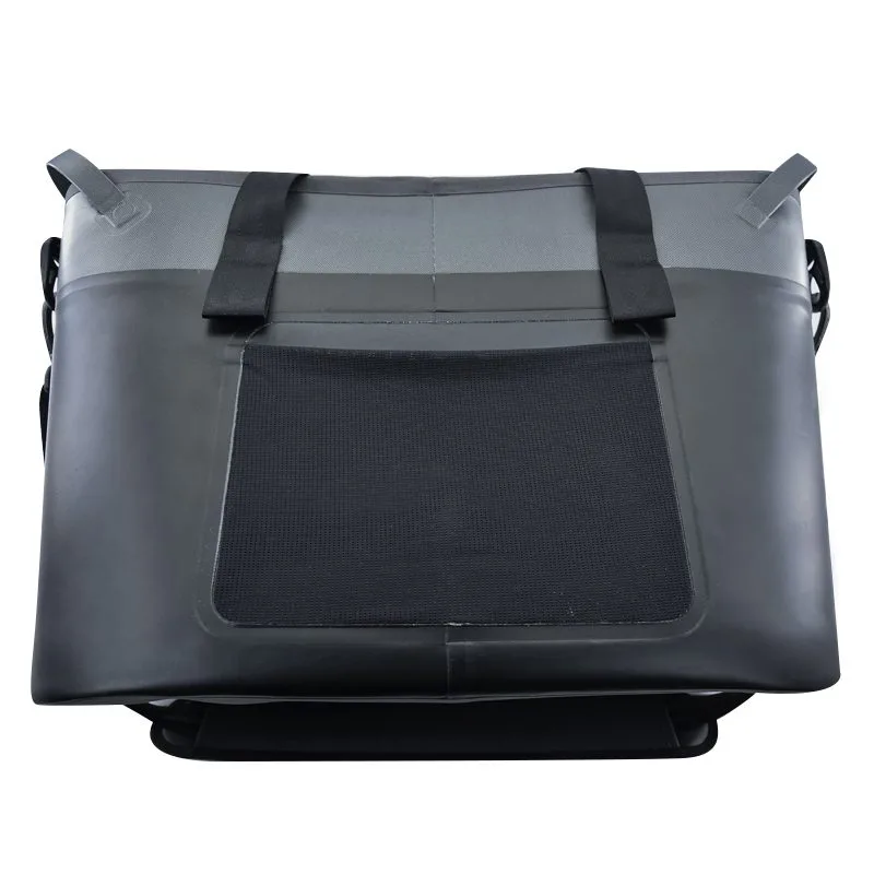 Przyjmuje szczelną konstrukcję, z uszczelnionymi na gorąco szwami, aby zapobiec kapaniu. Rozmiar to 18 x 6,7 x 13,8 cala i ma dużą pojemność, ale można go złożyć do przechowywania. Wzmocniony ukośny pasek nośny pozwala bezpiecznie przenosić ponad 50 funtów ciężaru, a długość pasków można również regulować, co ułatwia noszenie lub na ramieniu.